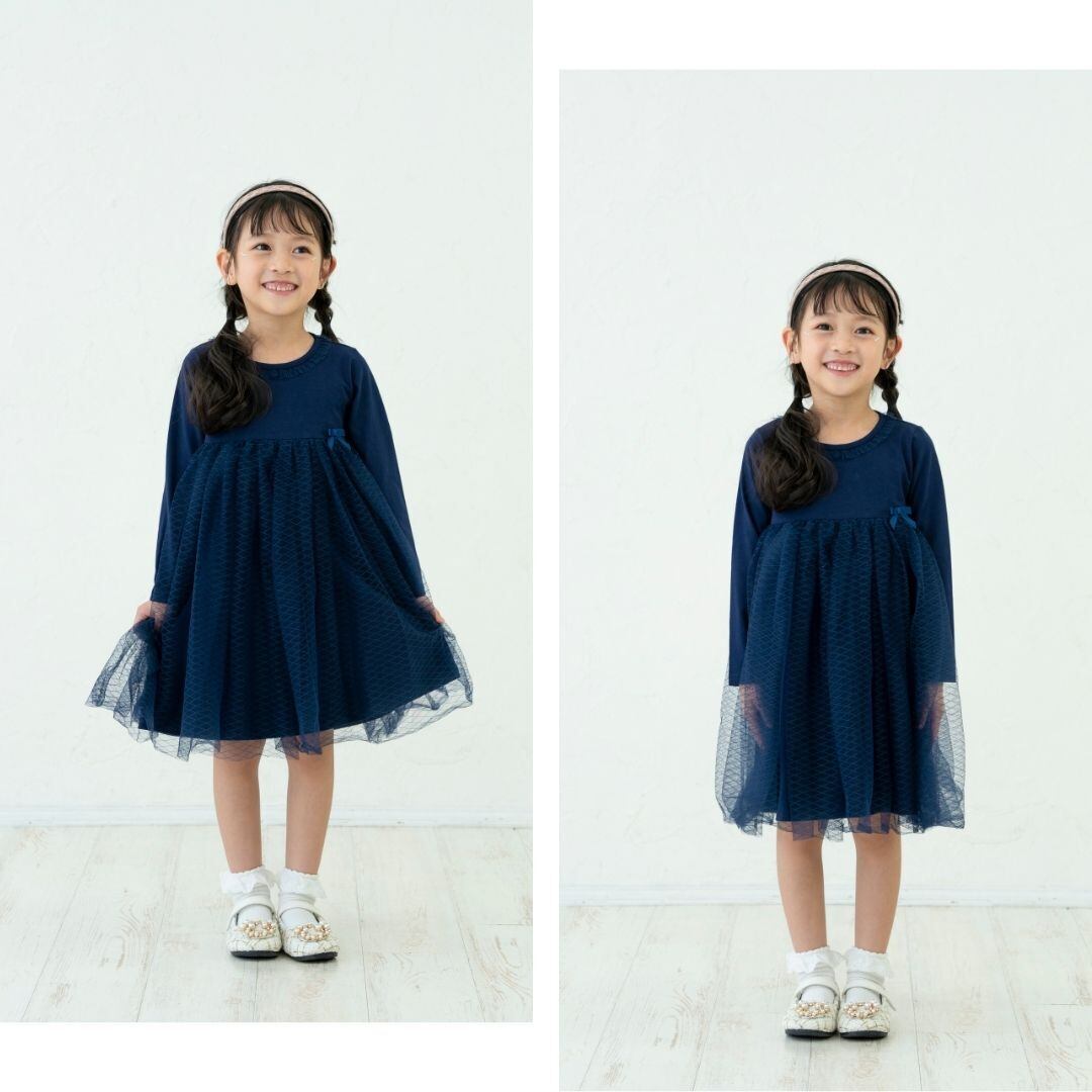 上品なカラーリングとチュール使いで定番人気のフォーマルワンピースです。